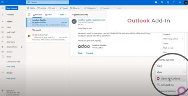 Bridges your mailbox with Odoo database, and the calendars are also synchronized. This Outlook plugin automates the communication logging and helps track the team communications efficiently. It is also a priceless tool for traceable communication with customers or when employees switch organizations. You can utilize office 365 calendar synchronizing with this feature.