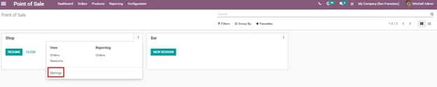 7. Point of Sale >> Dashboard >> Settings