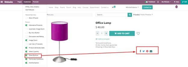 6. Website >> Shop >> Customize >> Share Buttons