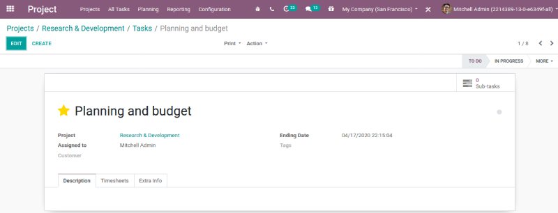 Click on the Edit button to edit the task details. This will open a form view of the task.