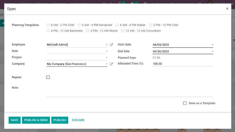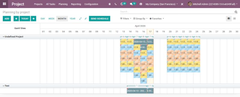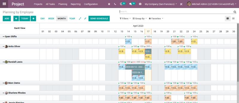 Under the planning feature of Odoo, one gets access to the Gannt chart enabling better planning and organizing of the workload and human resources.