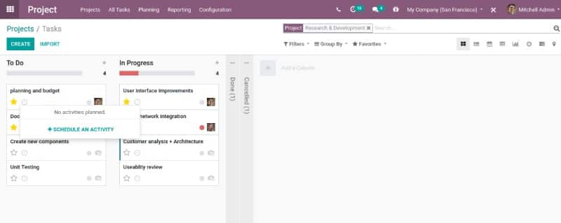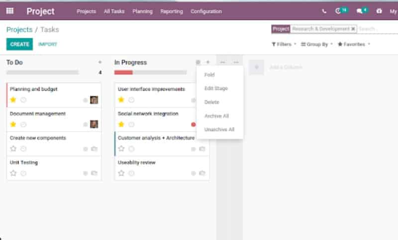 Once you get into the project you can see a Kanban view of projects. You can get the complete overview of project and tasks related to the project.